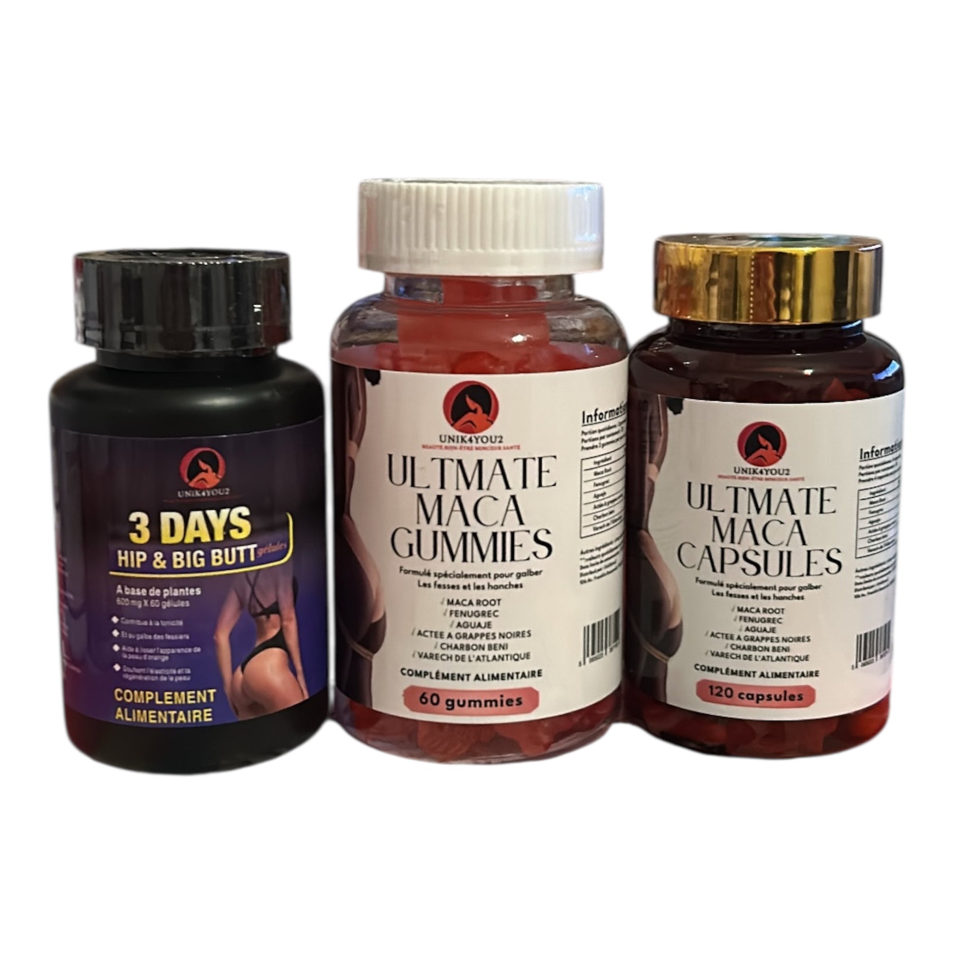KIT ULTIMATE MACA- capsules et gummies hautement dose - exclusivité Unik4you - routine courbes & booty